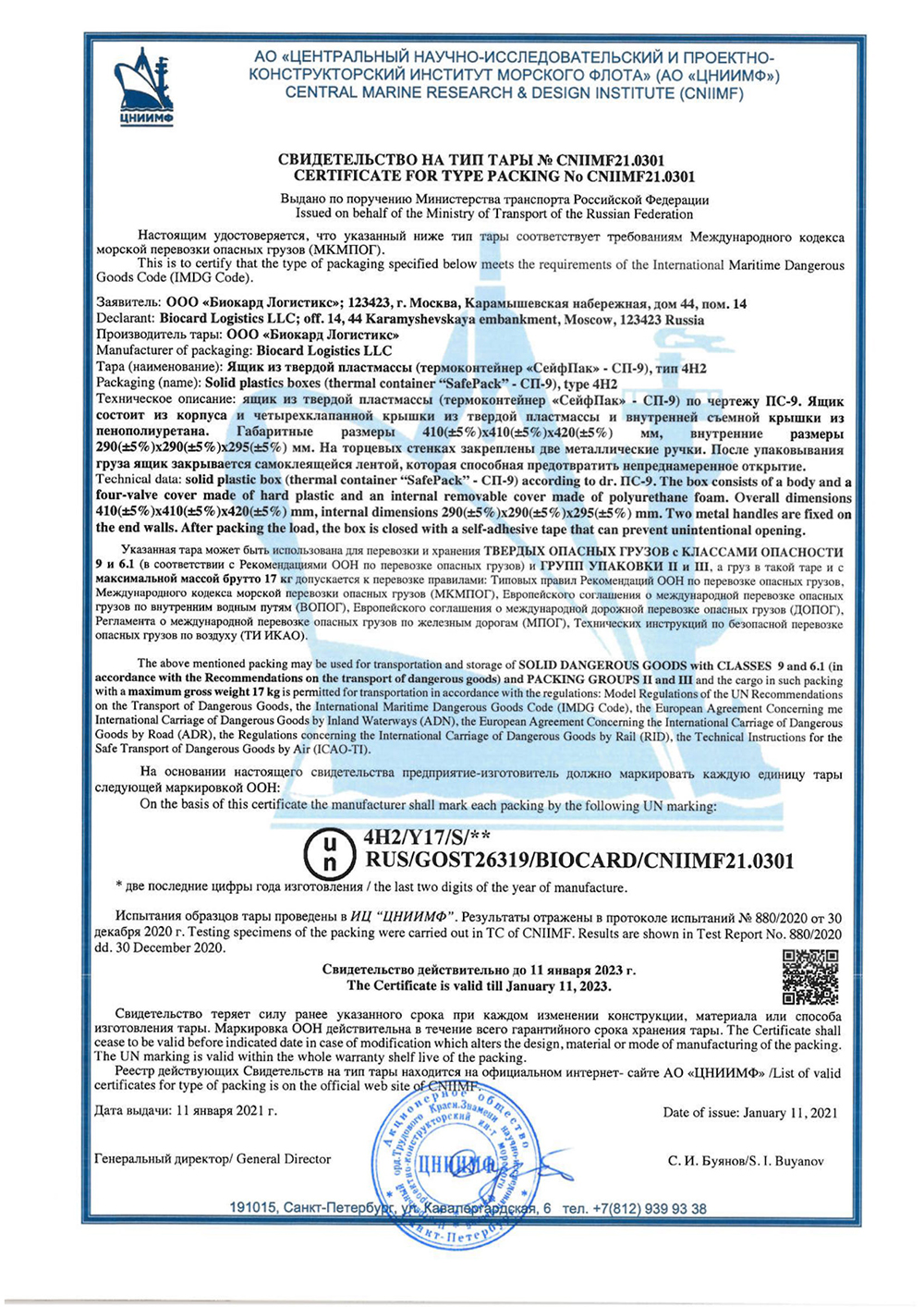Производимые компанией термоконтейнеры прошли все необходимые проверки и имеют регистрационное удостоверение и сертификаты соответствия.