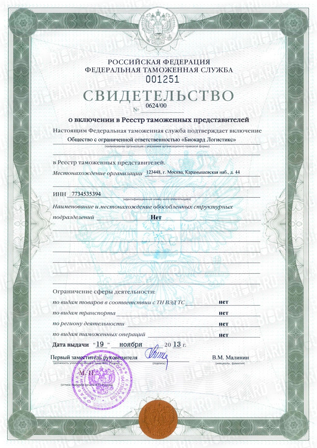BIOCARD – лицензированный таможенный брокер, мы имеем право оказывать услуги по таможенному оформлению в любом регионе России и за пределами страны.